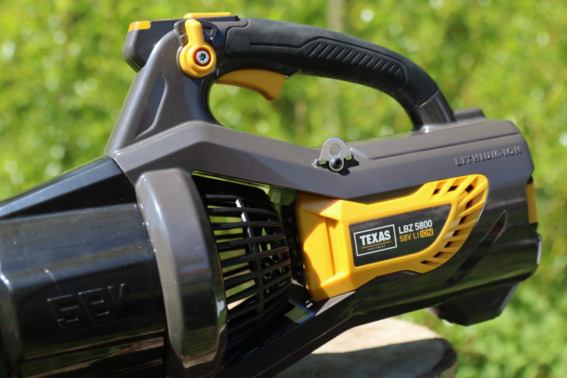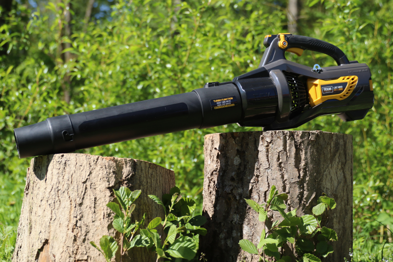 Leistungsstarker Laubbläser mit 1300 W kohlenstofffreiem Motor und 58 V / 4,0 Ah-Batterie, für bis zu 30 Minuten Arbeit, abhängig von der Blasleistung. Die Maschine verfügt über einen Turbo-Funktionsknopf, der bei Bedarf für kürzere Zeiträume zusätzliche Kraft bietet. Um dem Akku zu schützen, wird die Turboleistung verringert in die gleichen Maße der Entladung des Akkus.