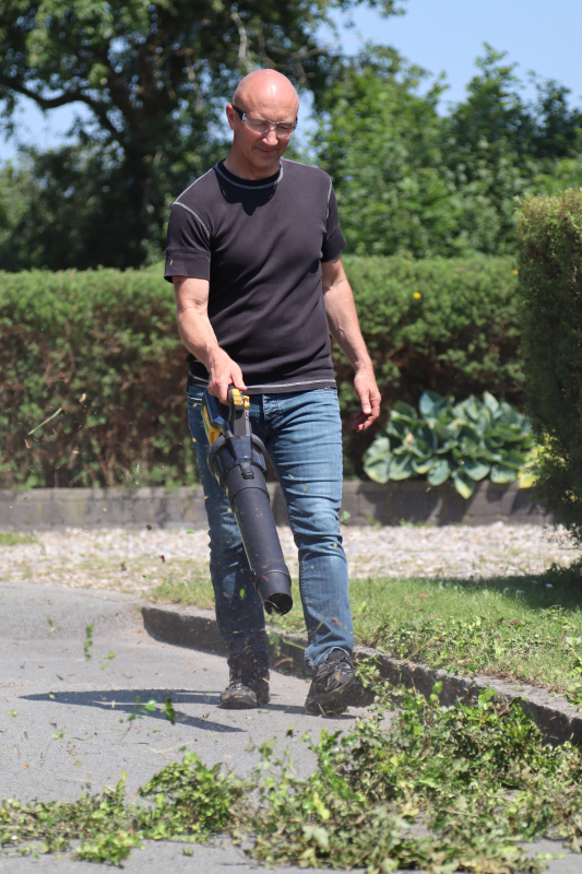 Wenn der Laubbläser aktiviert ist, sorgt die Luftgeschwindigkeit dafür, dass das Rohrende in einem optimalen Winkel gedrückt wird. Deshalb schonen Sie ihr Handgelenk da Sie es nicht drehen müssen. Die Blaskraft ist variabel, aber Sie können den Gasgriff sperren, damit Sie den nicht selber halten müssen. Das entlastet Ihre Hand und stattdessen können Sie sich auf die Kontrolle der Blasrichtung konzentrieren.